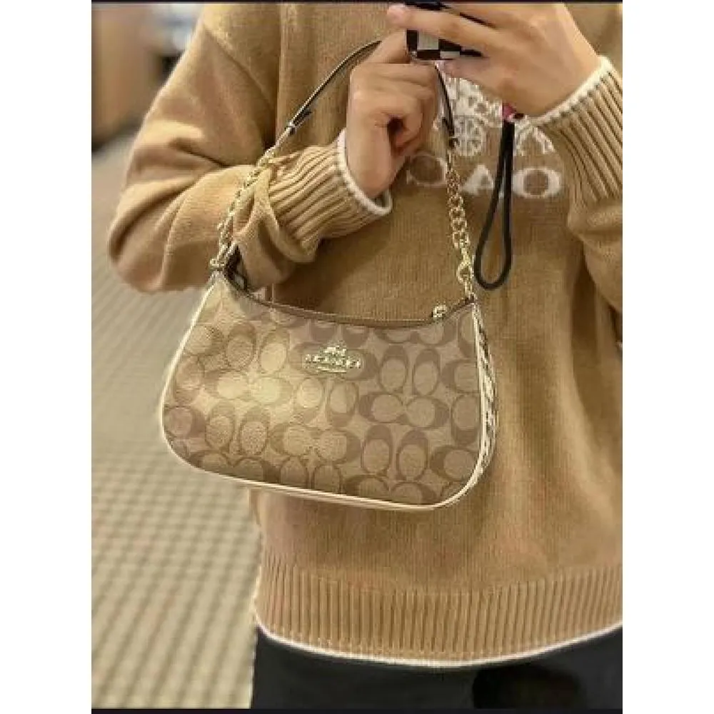 Luxurious Coach Teri Shoulder Bag Singature Canvas With Box For Women (SW605)