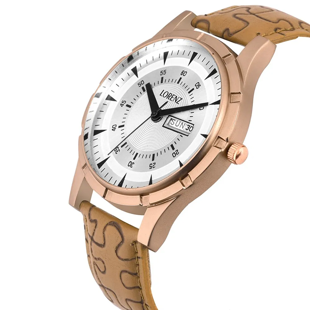 Lorenz Watch White Dial Leather Strap Day & Date Men’s Watch
