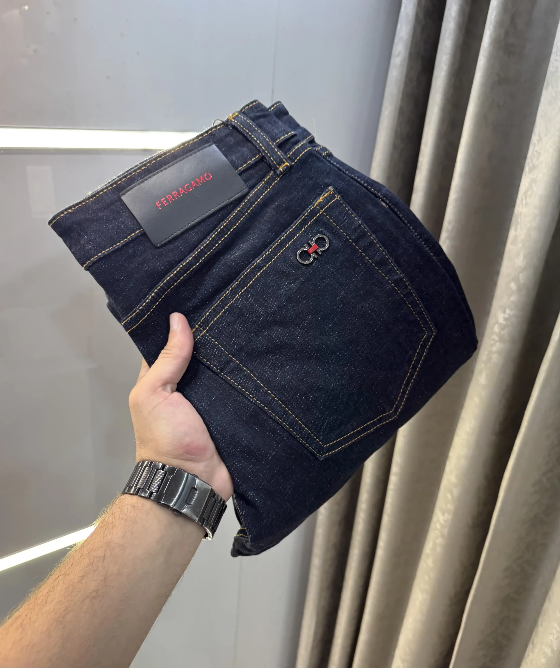Stylish Ferragamo Denin Denin Dark Blue For Men