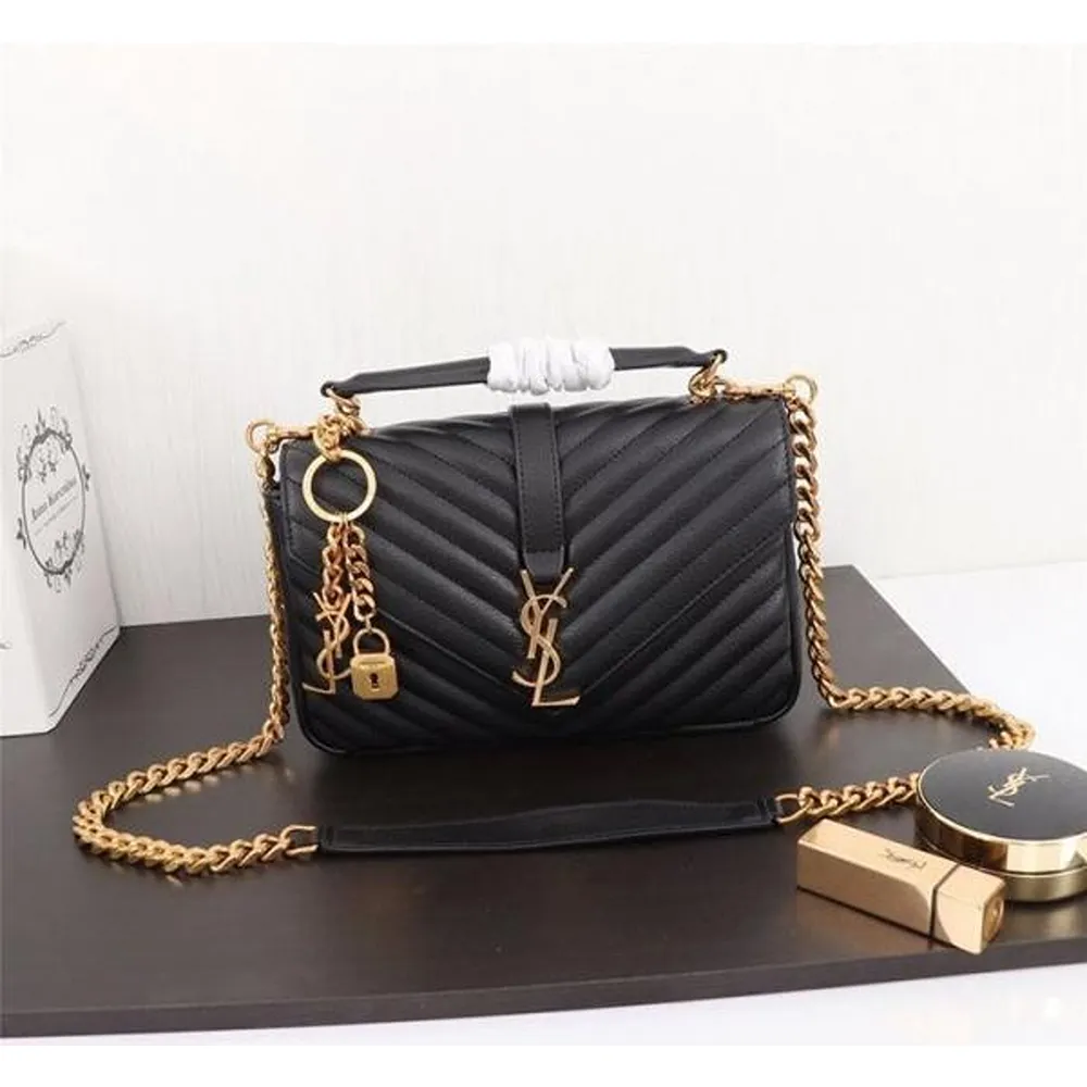 Fashionable Ysl Collage Shoulder Bag Black Gold With Original Box For Women